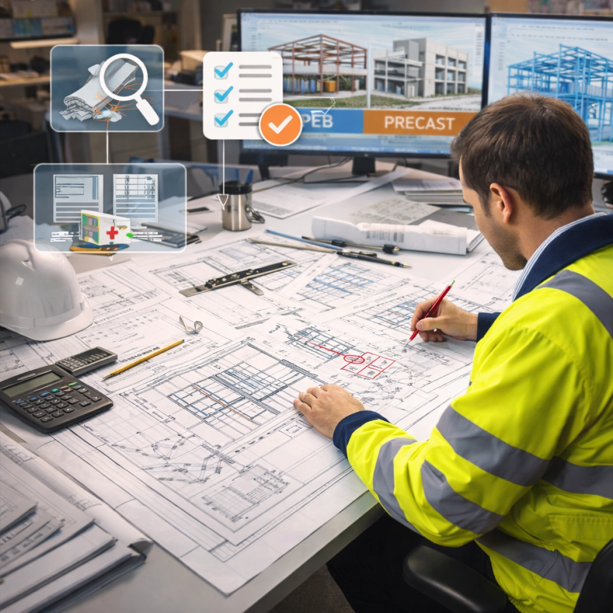 PEB and precast systems rely on repetition, precision, and tight coordination between design, detailing, and fabrication. Our engineering approach is tailored to these requirements—focusing on standardized workflows, clear documentation, and constructible solutions.